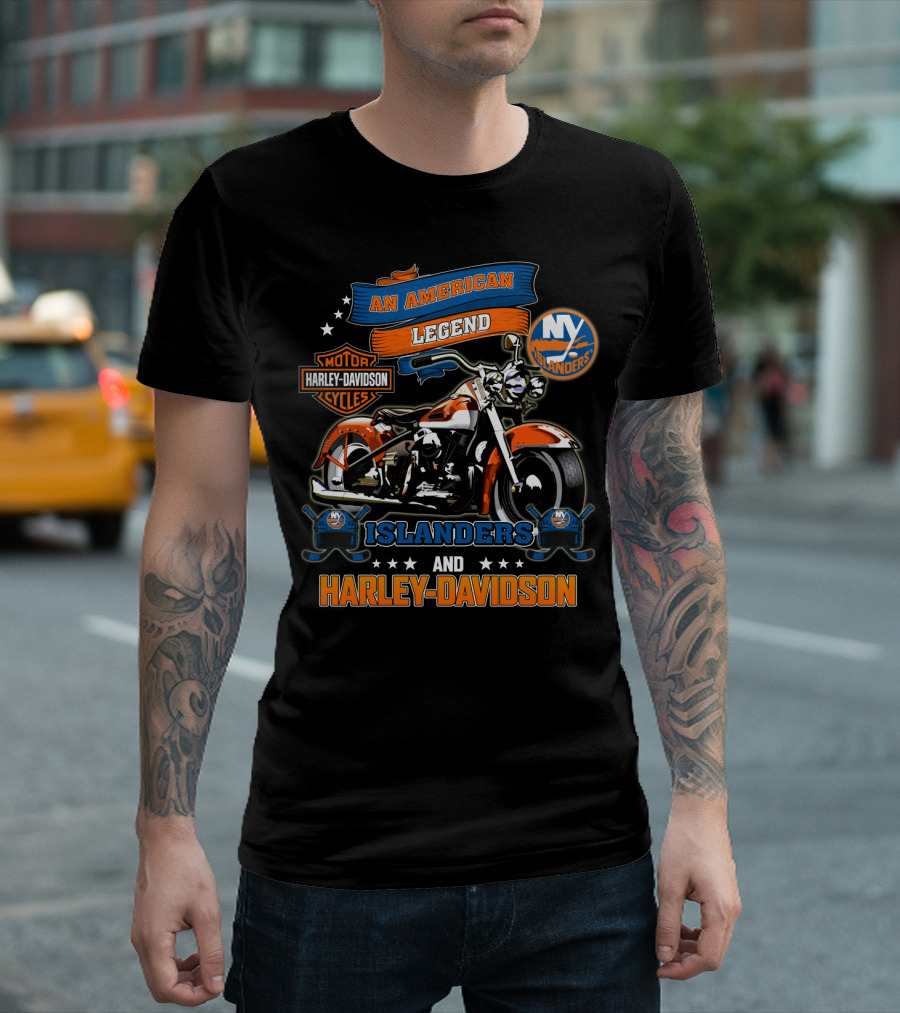 An American Legend New York Islanders Harley Davidson Motor Cycles T-Shirt