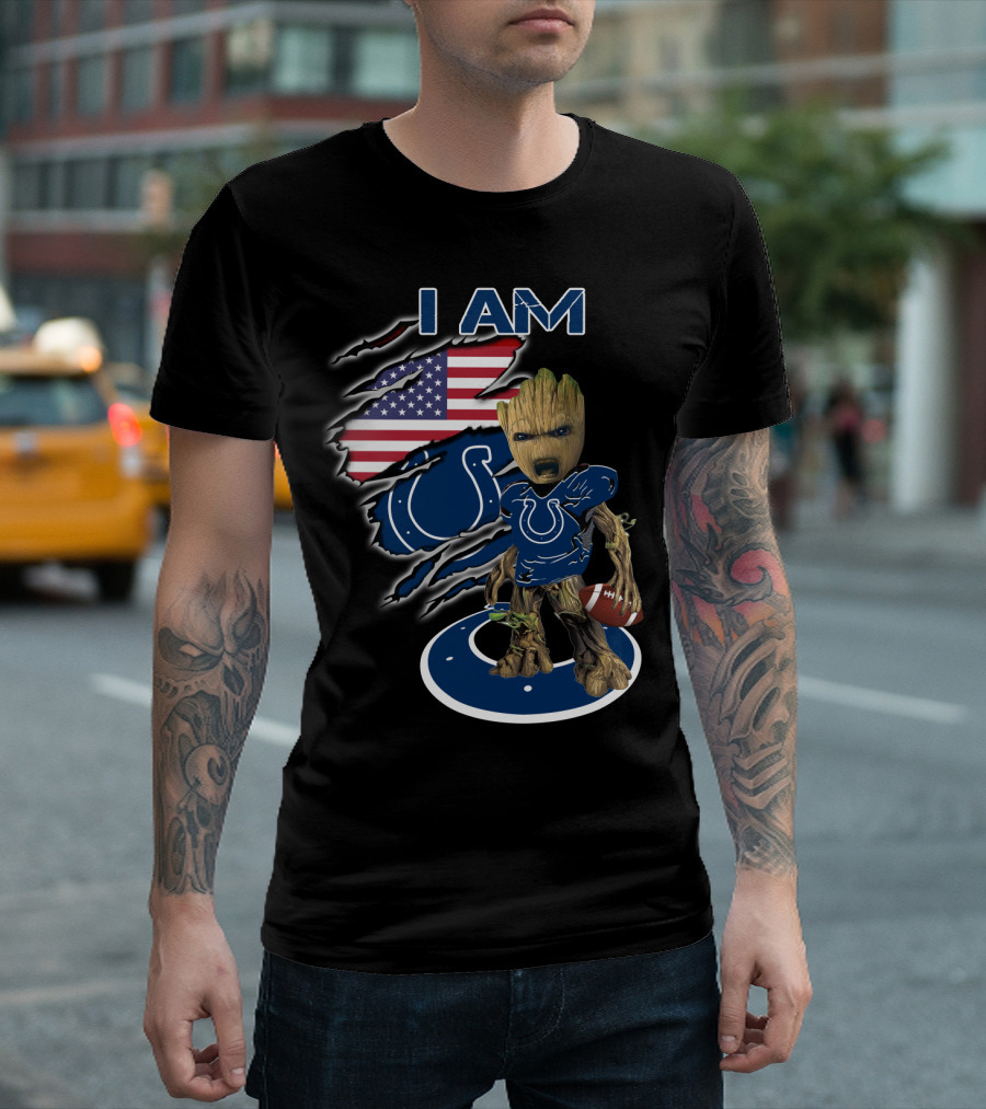 I Am Groot Colts Fan American Flag Football T-Shirt