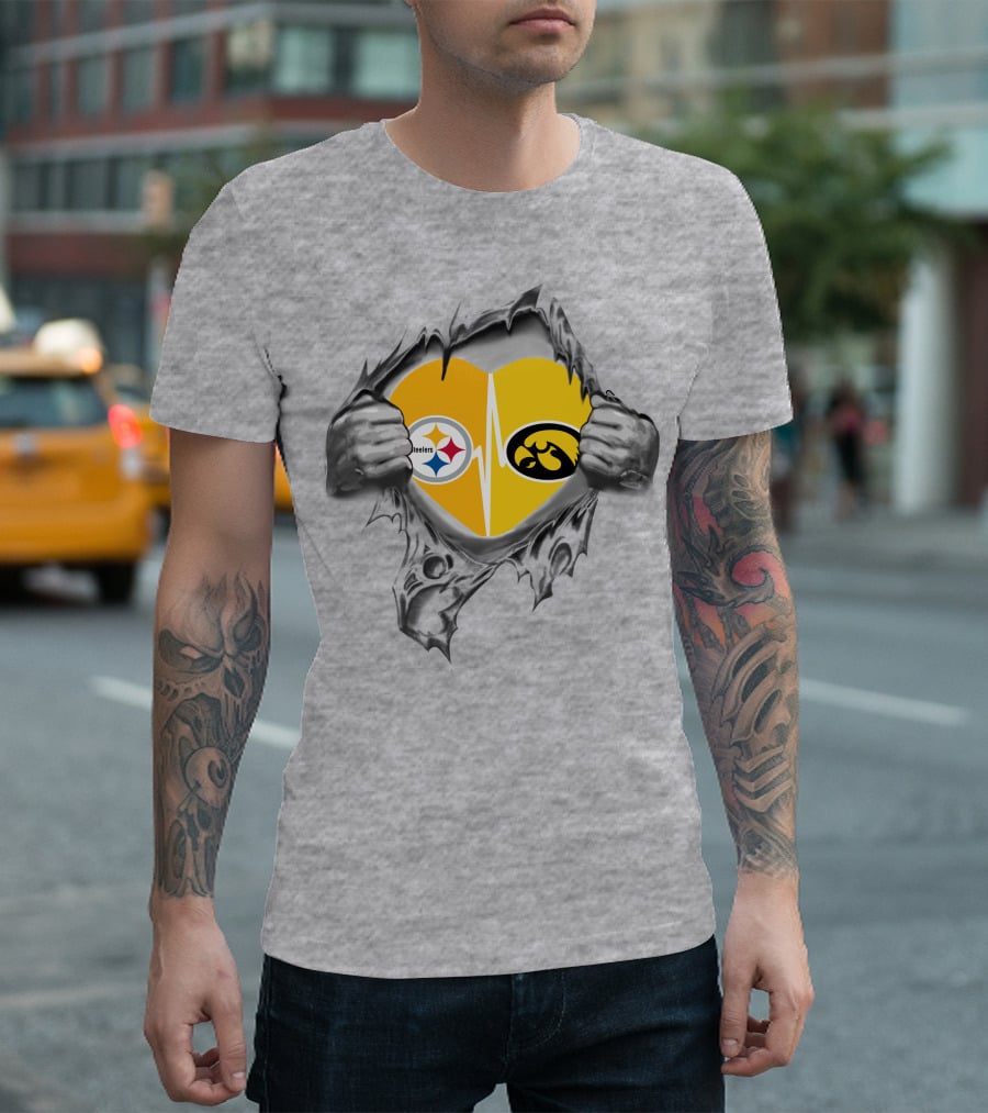 Steelers Hawkeyes Heartbeat Peeling Hands Football Fan T-Shirt