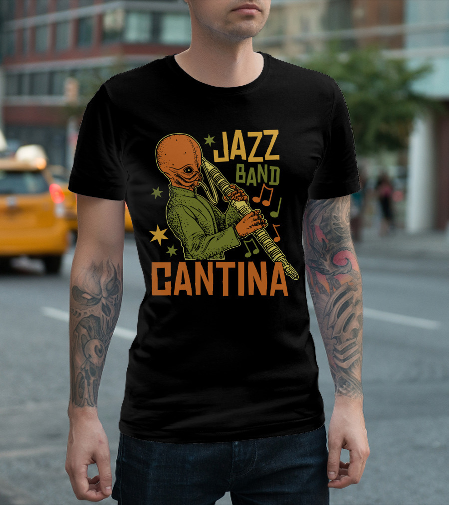 Cantina Jazz Band Musician With Instrument And Musical Notes T-Shirt