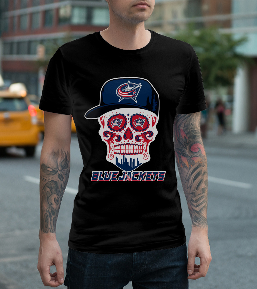 Columbus Blue Jackets Skull With Cap And Cityscape T-Shirt
