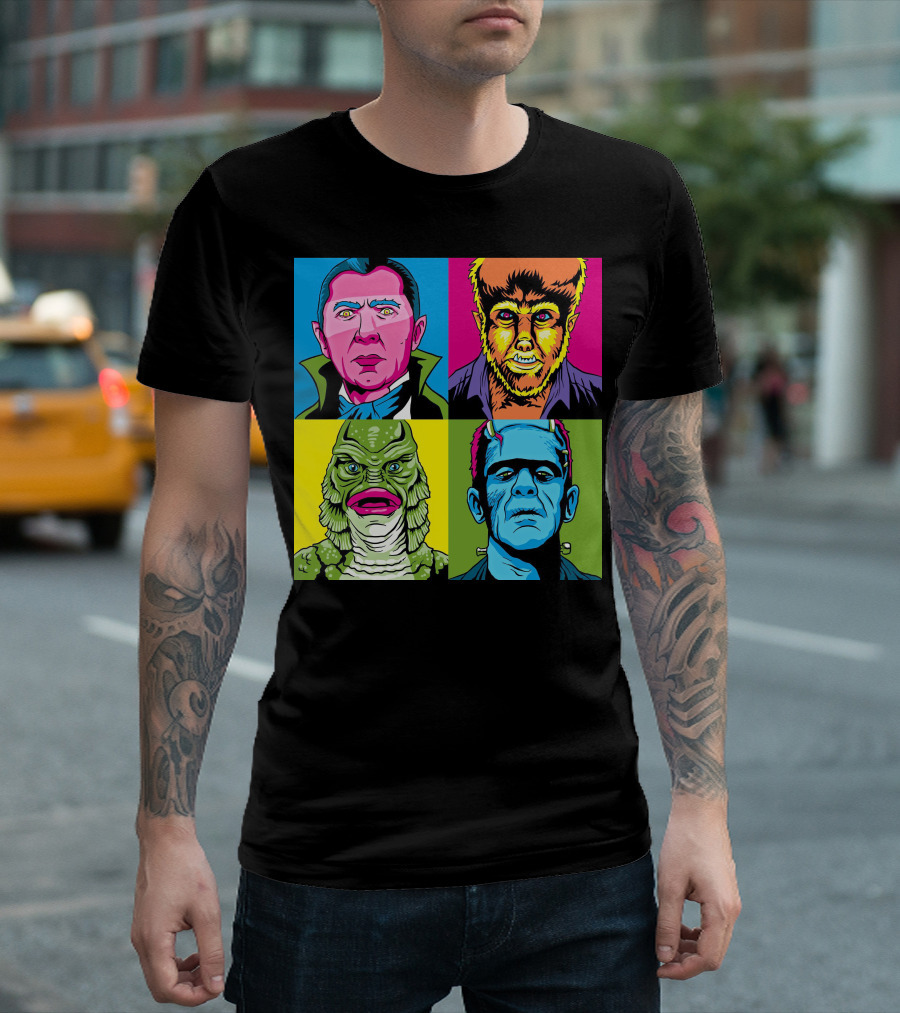 Dracula Frankenstein Wolfman Creature Horror Pop Art Icons T-Shirt