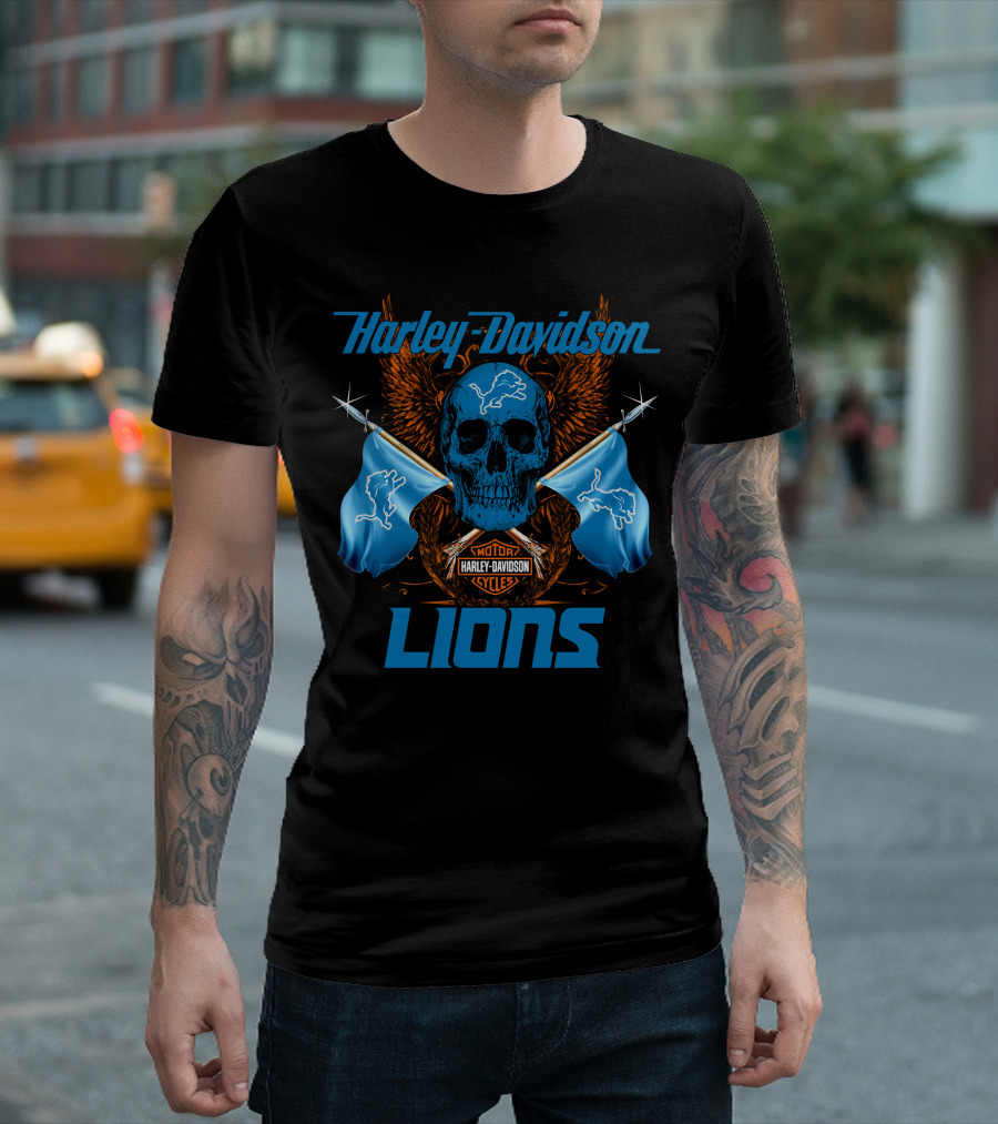 Harley Davidson Lions Skull Motor Cycles Flags T-Shirt