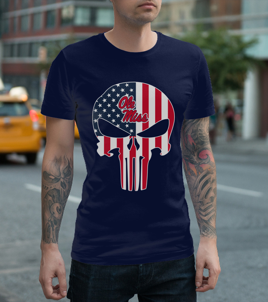 Ole Miss Rebels American Flag Punisher Skull T-Shirt