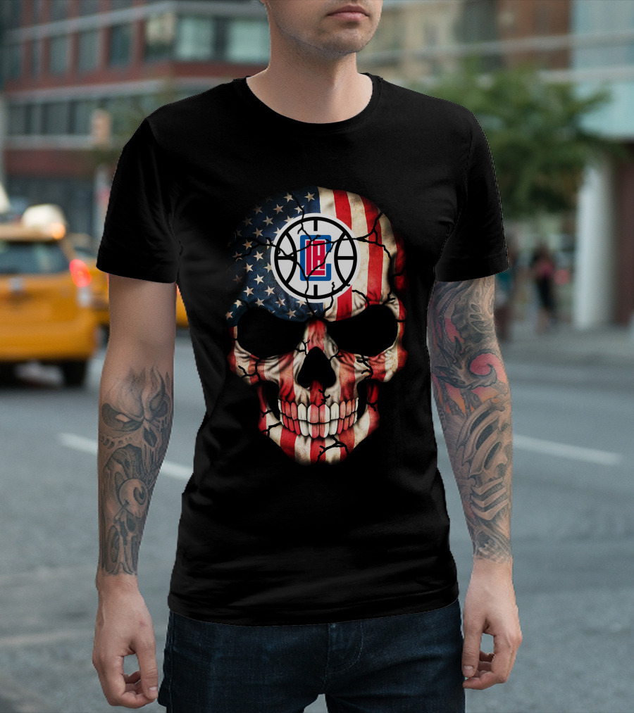 American Flag Skull La Clippers Basketball Logo 187 T-Shirt