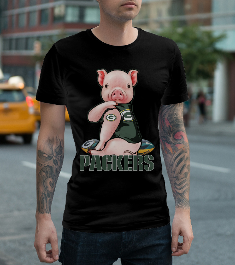Cute Pig Wearing Green Bay Packers Jersey With Footballs T-Shirt