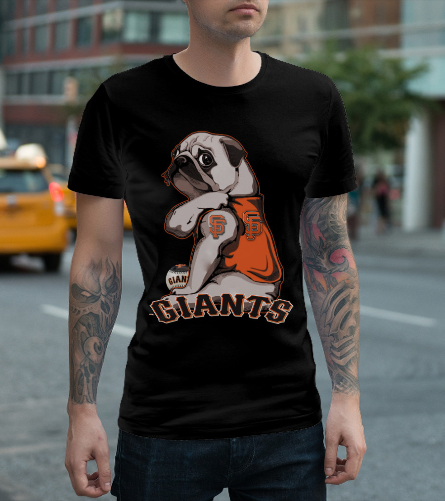 Pug In San Francisco Giants Orange Jersey With Logo And Baseball T-Shirt