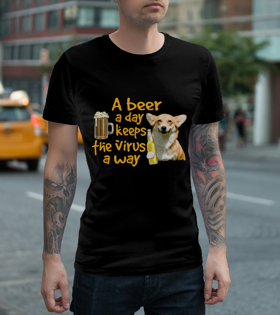 A Beer A Day Keeps The Virus Away Funny Corgi T-Shirt