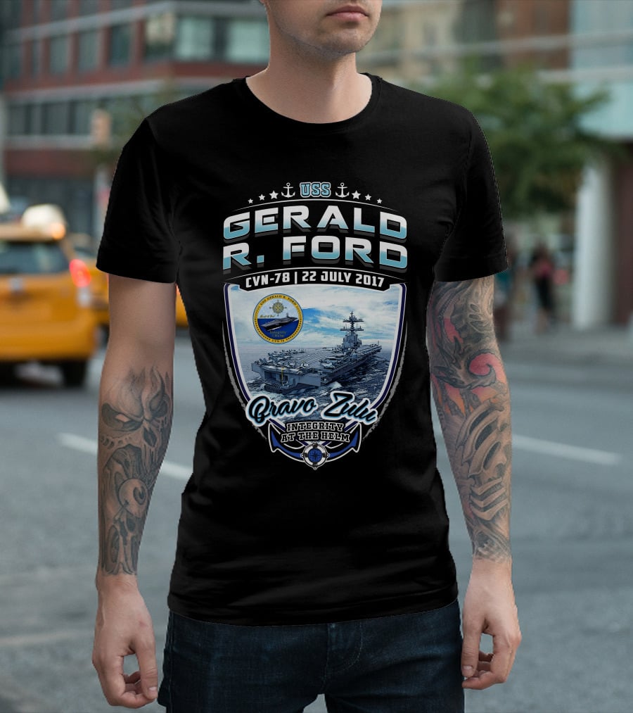 Uss Gerald R. Ford Cvn-78 Bravo Zulu Integrity At The Helm 22 July 2017 T-Shirt