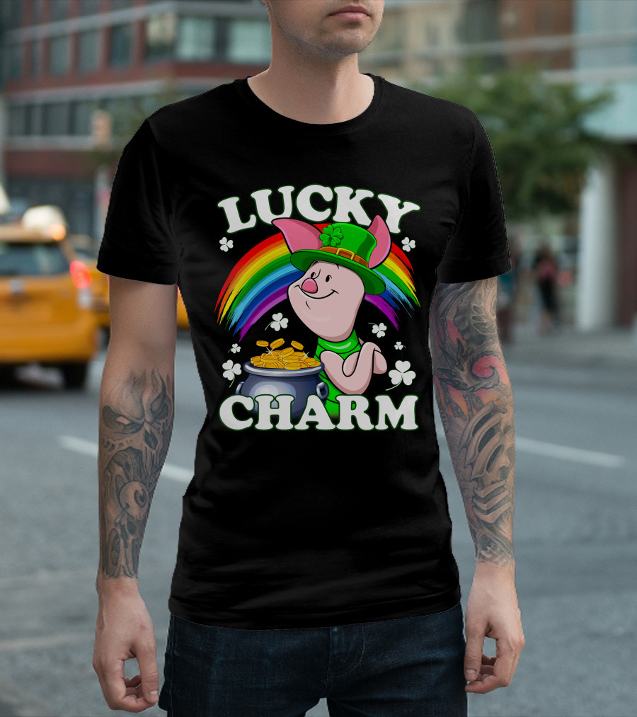Lucky Charm Piglet Rainbow Gold Coins T-Shirt