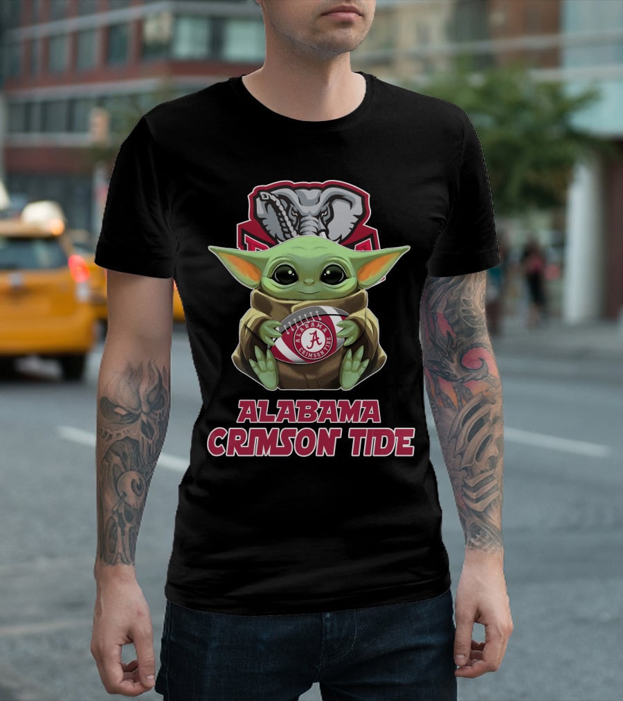 Alabama Crimson Tide Baby Yoda Holding Football T-Shirt