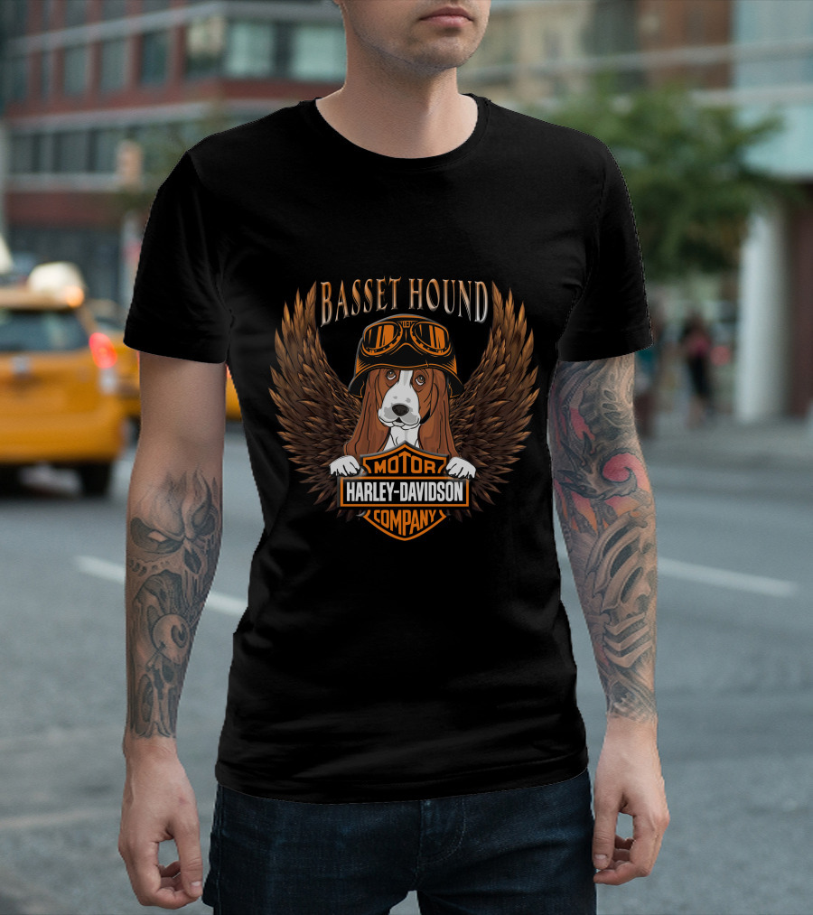 Basset Hound Harley Davidson Motor Company Winged Dog Helmet T-Shirt