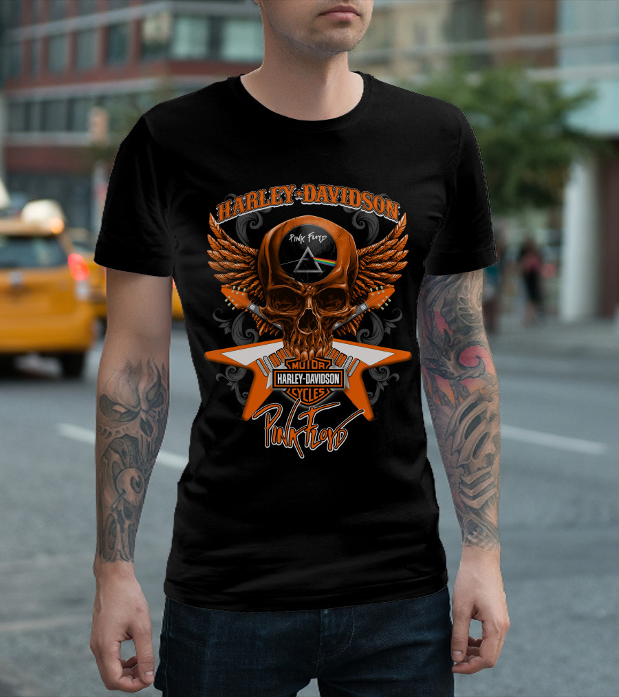 Harley Davidson Pink Floyd Skull Design With Prism And Wings T-Shirt