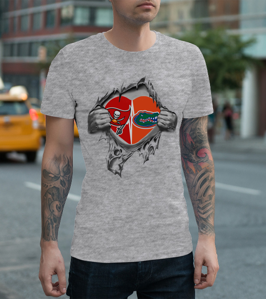 Tampa Bay Buccaneers Florida Gators Heartbeat Inside Tear Rip Pull Style T-Shirt