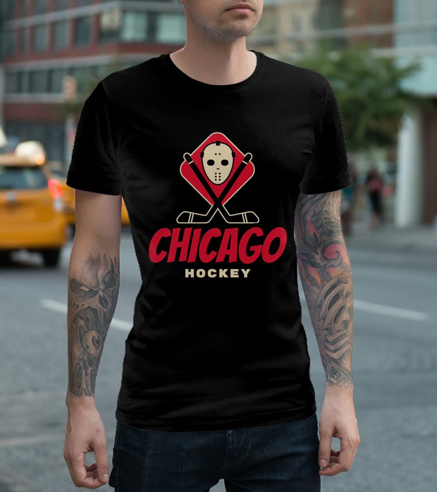 Chicago Hockey Mask And Crossed Sticks T-Shirt