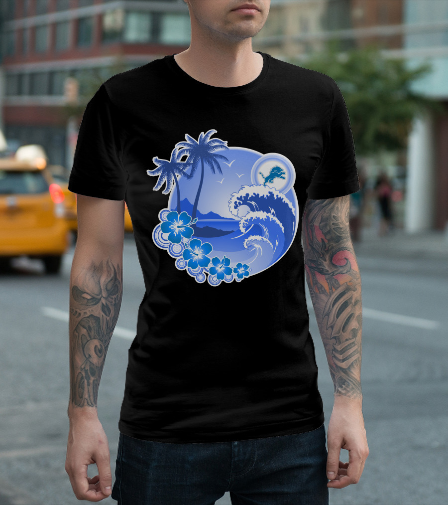 Detroit Lions Happy Holidays Tropical Wave And Palm Trees T-Shirt