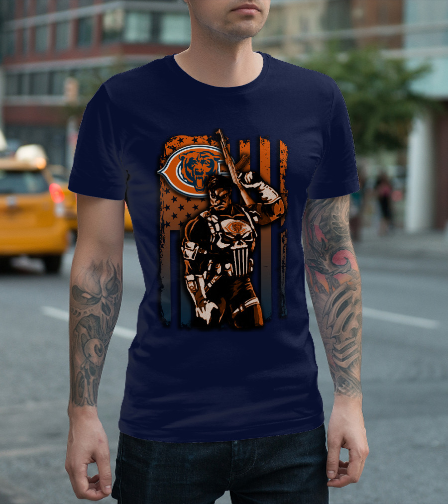 Chicago Bears Punisher Style Football T-Shirt
