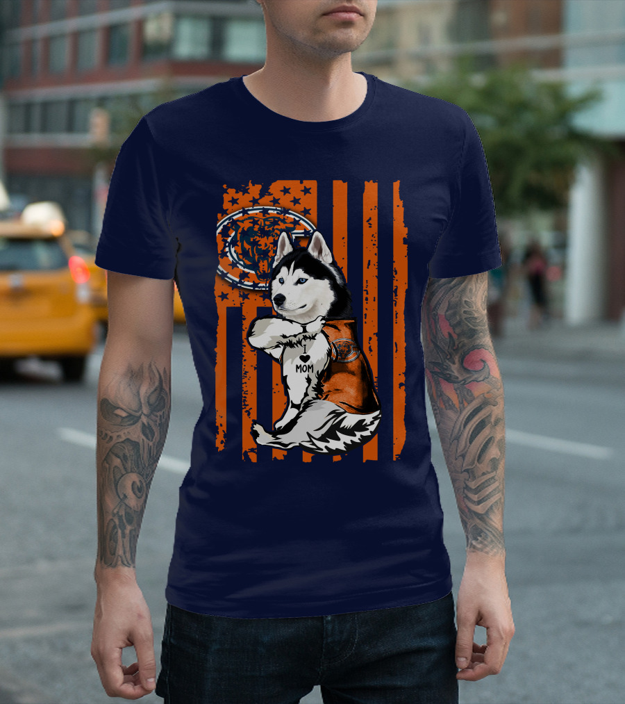 Siberian Husky Chicago Bears I Love Mom Flag T-Shirt