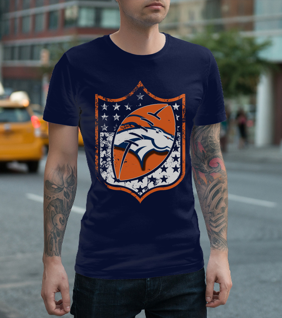 Denver Broncos Vintage Logo With Stars And Orange Shield T-Shirt