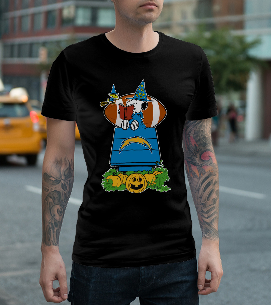 Los Angeles Chargers Snoopy Halloween Witch Reading Football Pumpkin T-Shirt