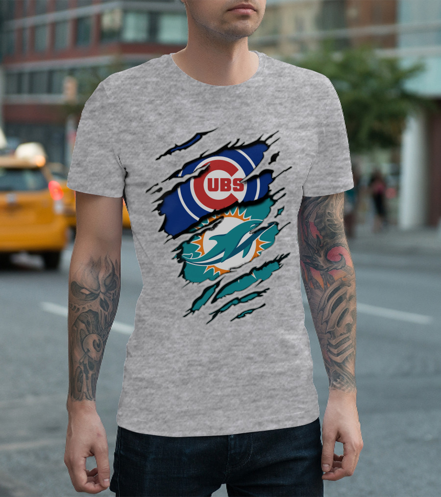 Cubs Dolphins Logo Mashup Nfl Mlb Sports Fans T-Shirt