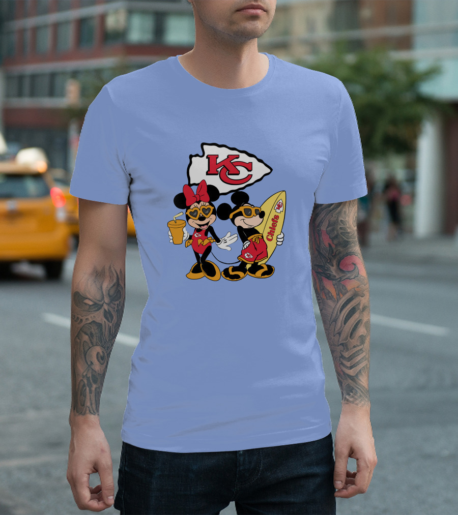 Chiefs Mickey And Minnie Vacation Kc Football Surfboard Fun T-Shirt