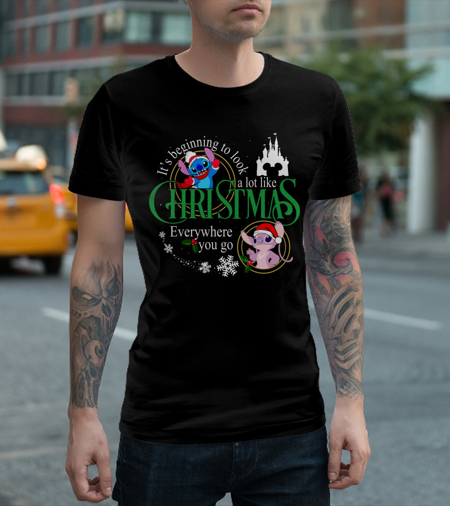 It's Beginning To Look A Lot Like Christmas Stitch & Angel Everywhere You Go T-Shirt