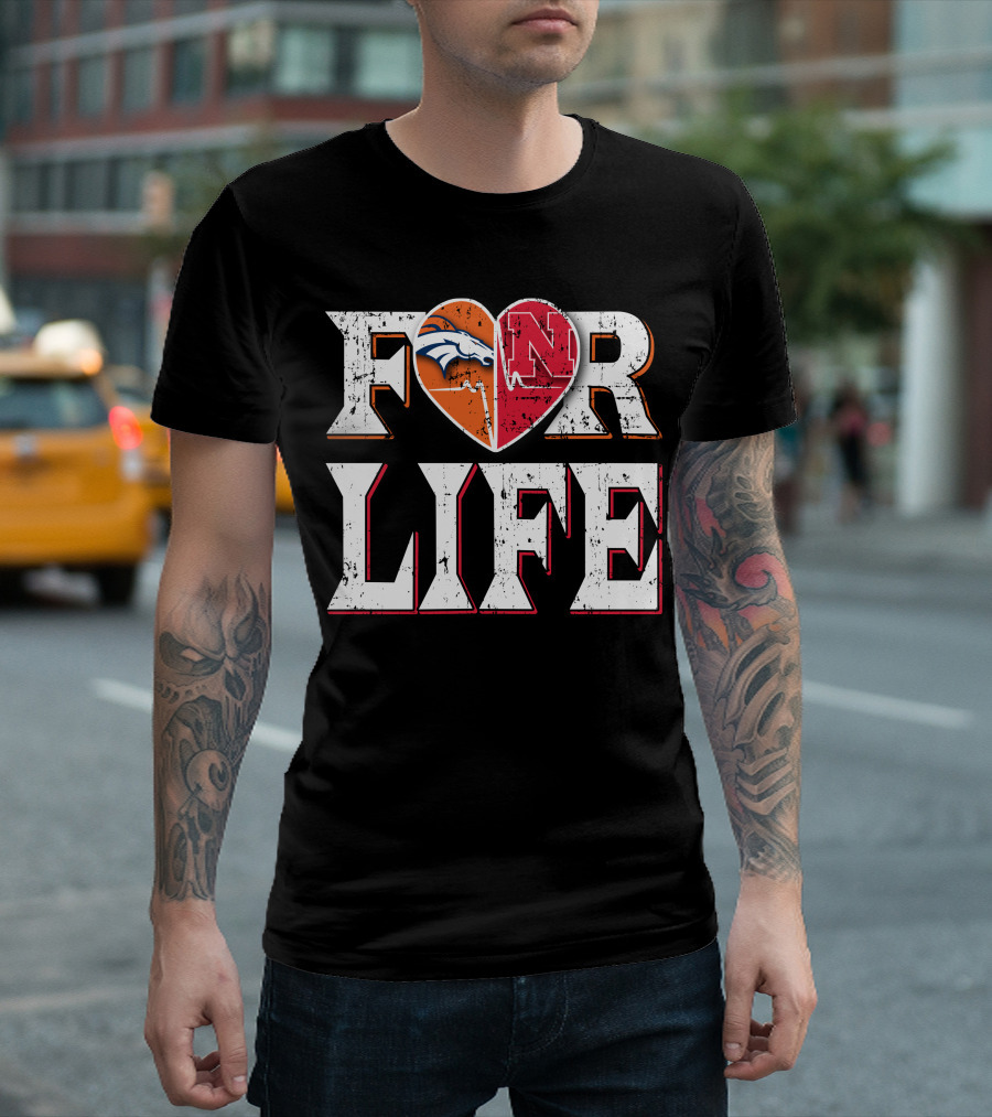 For Life Broncos Cornhuskers Heart T-Shirt