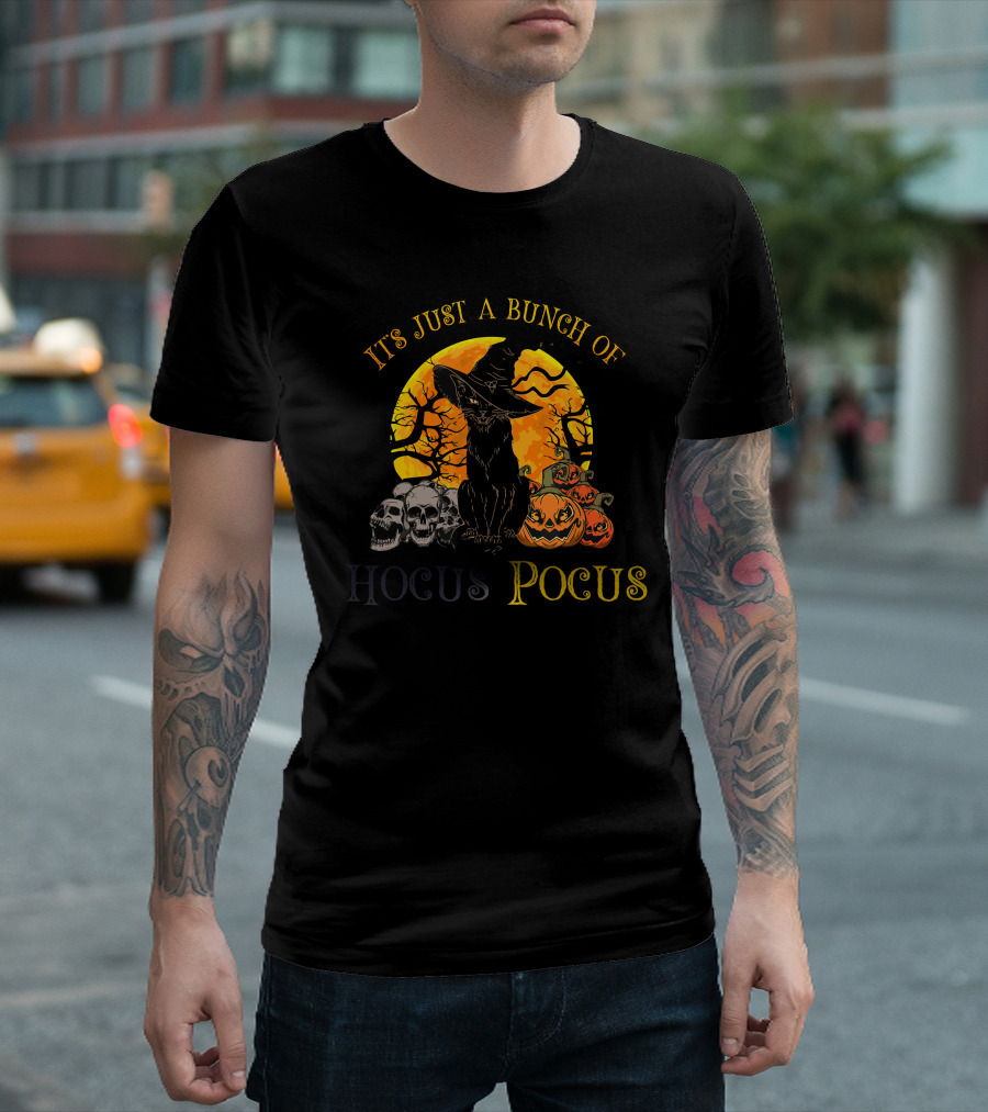It's Just A Bunch Of Hocus Pocus Black Cat Moon Halloween Costume T-Shirt