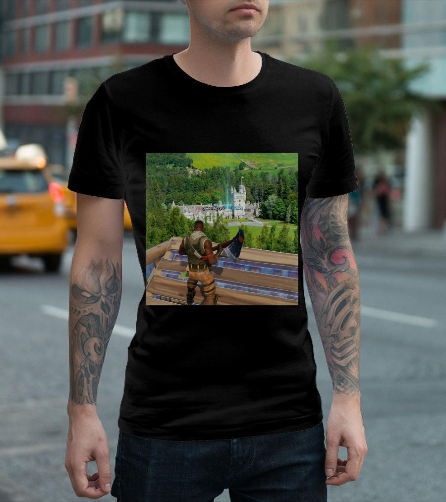 Queen Elizabeth Reboot Card Fortnite Player Landscape Castle Scene T-Shirt