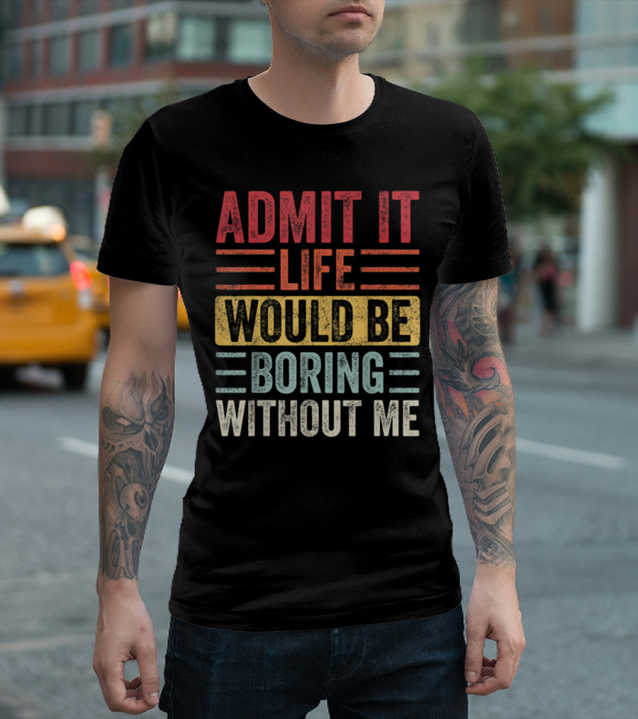 Admit It Life Would Be Boring Without Me Text Blocks In Distressed Red Yellow Blue And Gray T-Shirt
