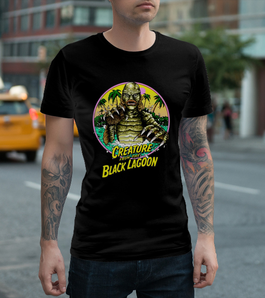 Creature From The Black Lagoon Retro Monster Beach Scene T-Shirt
