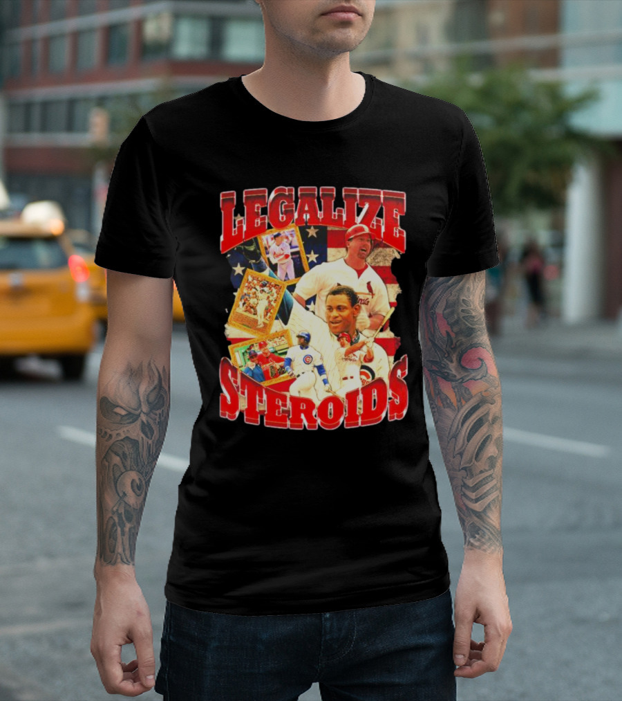 Legalize Steroids Baseball Iconography Retro USA Flag T-Shirt