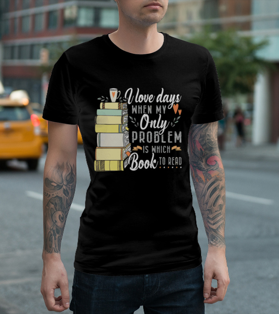 I Love Days When My Only Problem Is Which Book To Read Stack Of Colorful Books And Heart Accents T-Shirt