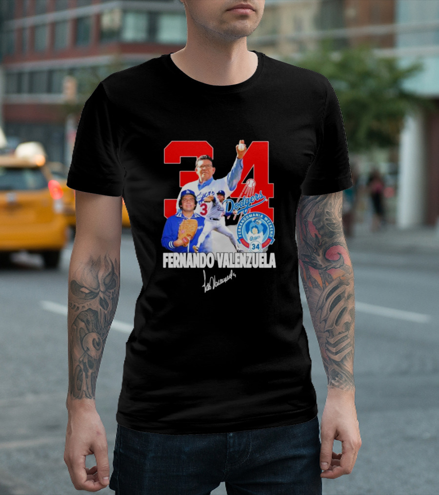 Dodgers Fernando Valenzuela Fernando Mania Weekend Signature 34 T-Shirt