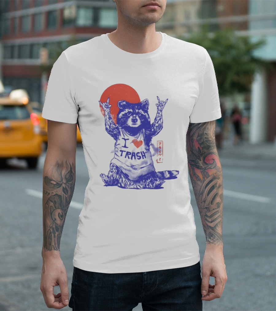 Wickedclothes I Love Trash Raccoon Rock Gesture Red Moon T-Shirt