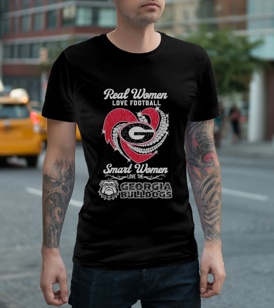 Real Women Love Football Smart Women Love The Georgia Bulldogs With Heart And Glitter T-Shirt