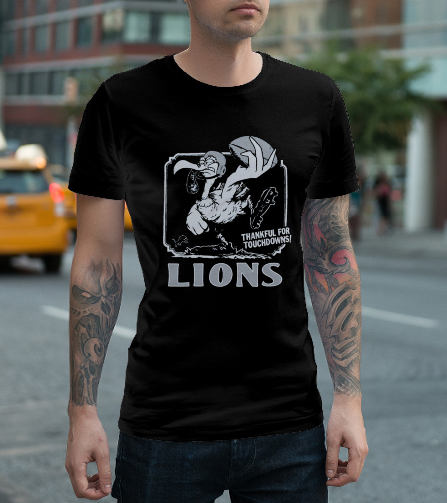 Detroit Lions NFL Vulture Football Thankful For Touchdowns T-Shirt