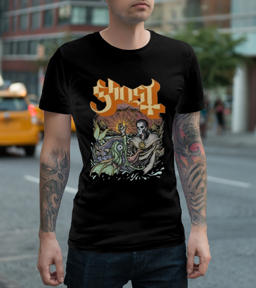 Ghost Papa And The Whale Legendary Encounter With Rising Sun Background T-Shirt