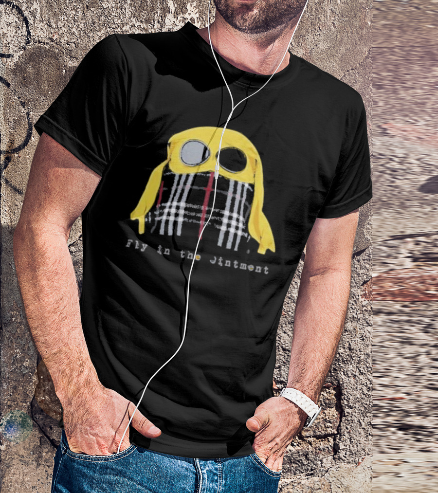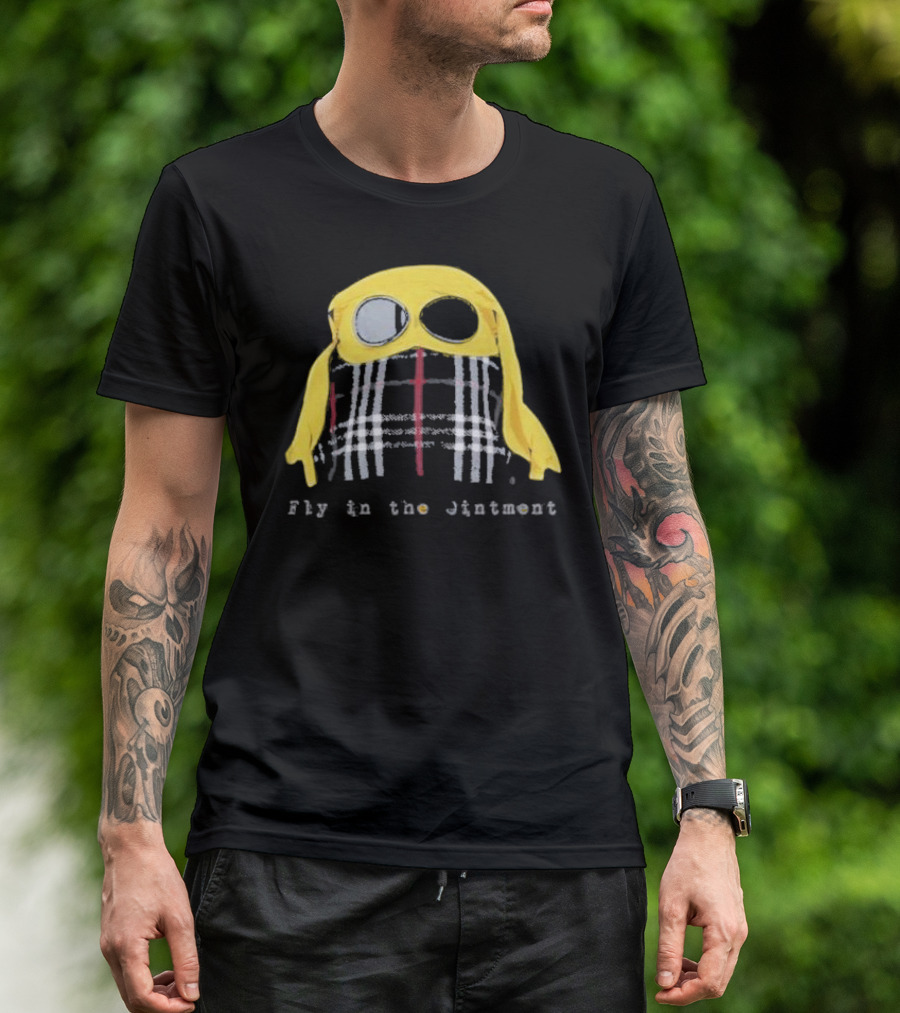 Fly In The Jintment Yellow Hat Plaid Tee — on-model night pose, front view.