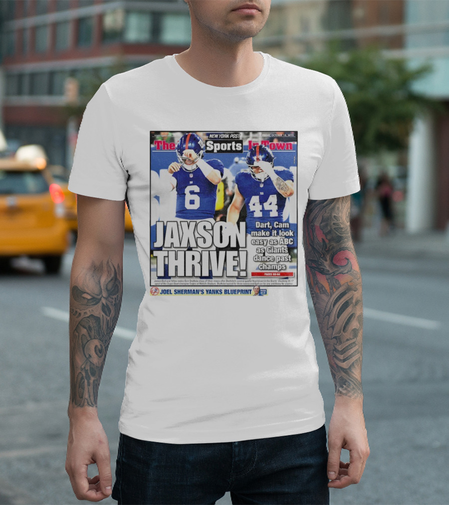 New York Post Jaxson Dart Cam Skattebo Giants Thrive Edition T-Shirt
