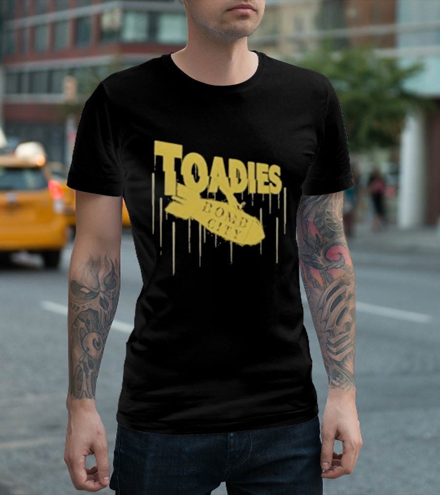 Toadies Bomb City Dripping Text and Bomb Icon T-Shirt