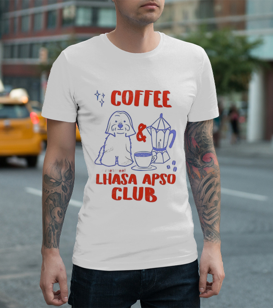 Coffee And Lhasa Apso Club Fun Dog Lover Design T-Shirt