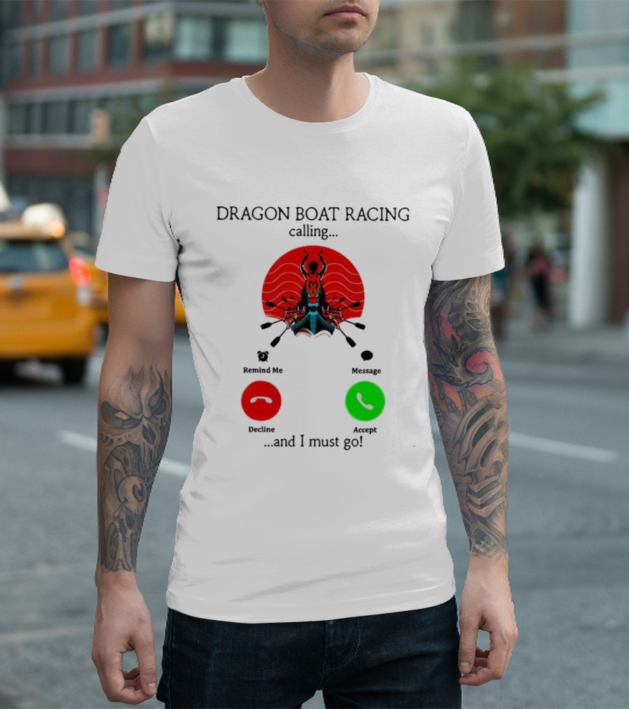 Dragon Boat Racing Calling I Must Go Phone Display With Paddles And Symbols T-Shirt