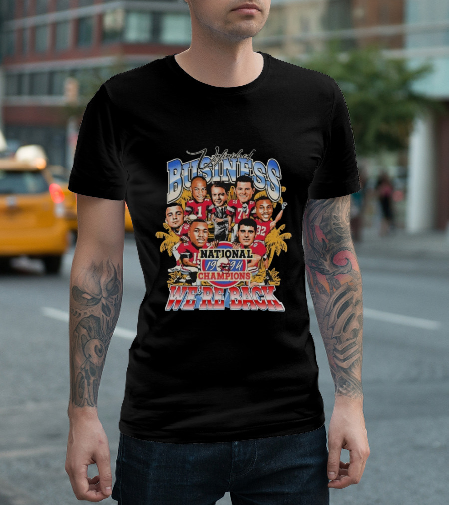 Unfinished Business We're Back National Champions 1994 Cartoon Football Team Players Palm Trees T-Shirt