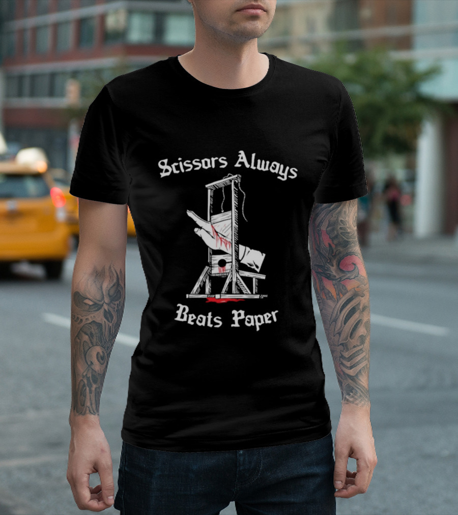 Scissors Always Beats Paper Guillotine Hand Illustration T-Shirt