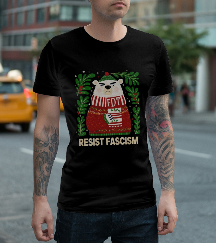 Resist Fascism FDT Bear In Christmas Sweater Anti-Trump T-Shirt