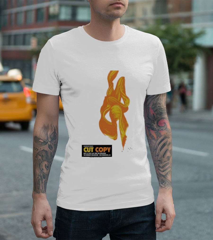 Cut Copy San Francisco November 13 2025 Concert Orange Yellow Flame Artwork T-Shirt