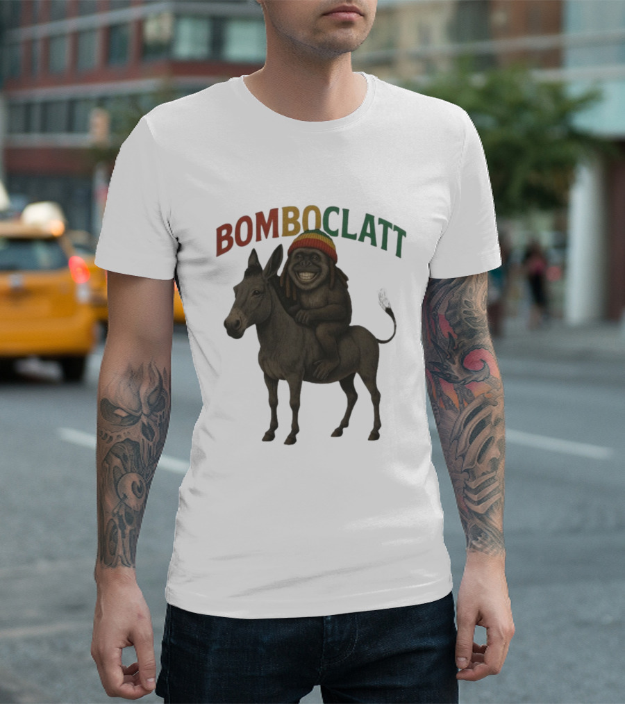 Bomboclatt Jahmunkey Donkey With Rasta Hat And Dreadlocks T-Shirt