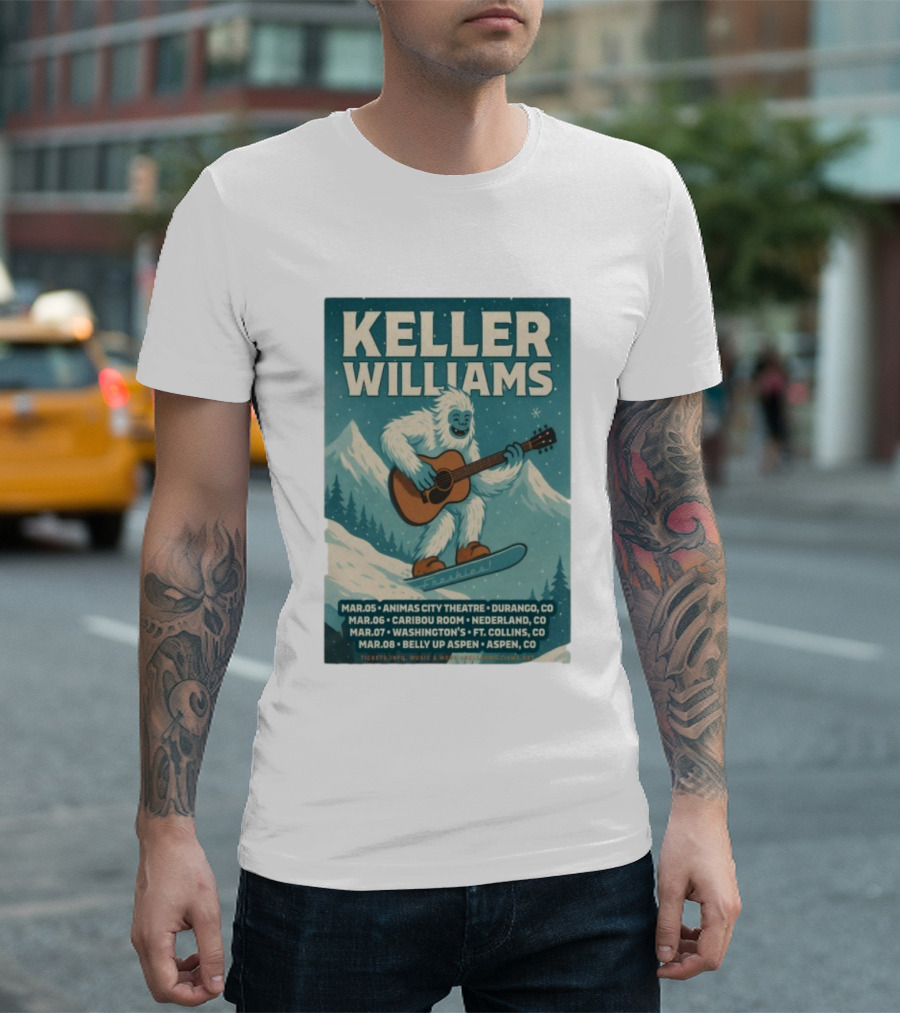 Keller Williams Winter 2026 Tour Guitar Ski Freshies Animas City Durango Caribou Nederland Washington's Fort Collins Belly Up Aspen T-Shirt